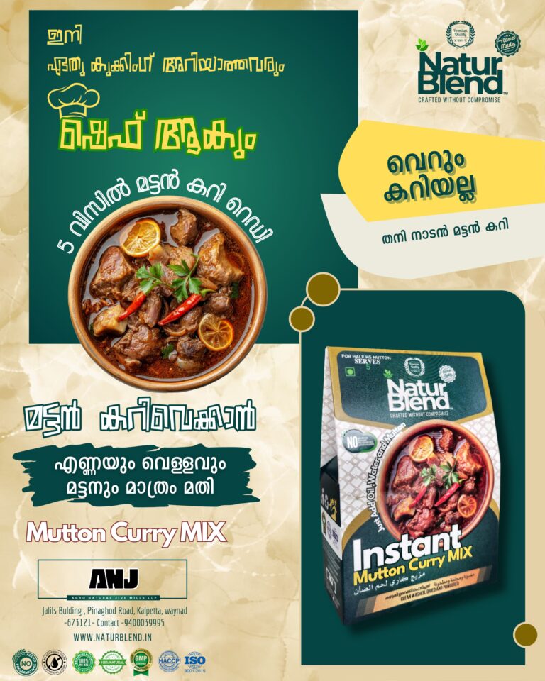 NaturBlend Instant Curry Powder makes everyday cooking incredibly easy by eliminating all the time-consuming steps of traditional curry preparation. With its ready-to-cook formula, you don’t need to wash or chop vegetables, grind spices, or prepare onion–ginger–garlic paste — just boil water, add the NaturBlend mix, a little oil, and cook for 5–7 minutes to get a perfect curry. It saves 35–45 minutes every time compared to traditional cooking and works beautifully even without fresh vegetables because it already includes onion, tomato, ginger, garlic, dehydrated veggies, and a complete curry base. Designed for busy families, students, office-goers, hostels, and hotels, this mix delivers quick, hygienic, and consistently delicious results with zero cooking skills required. With clean washed spices, no artificial colours or fillers, and accurately measured ingredients, NaturBlend ensures purity, convenience, and the same great taste in every packet.
